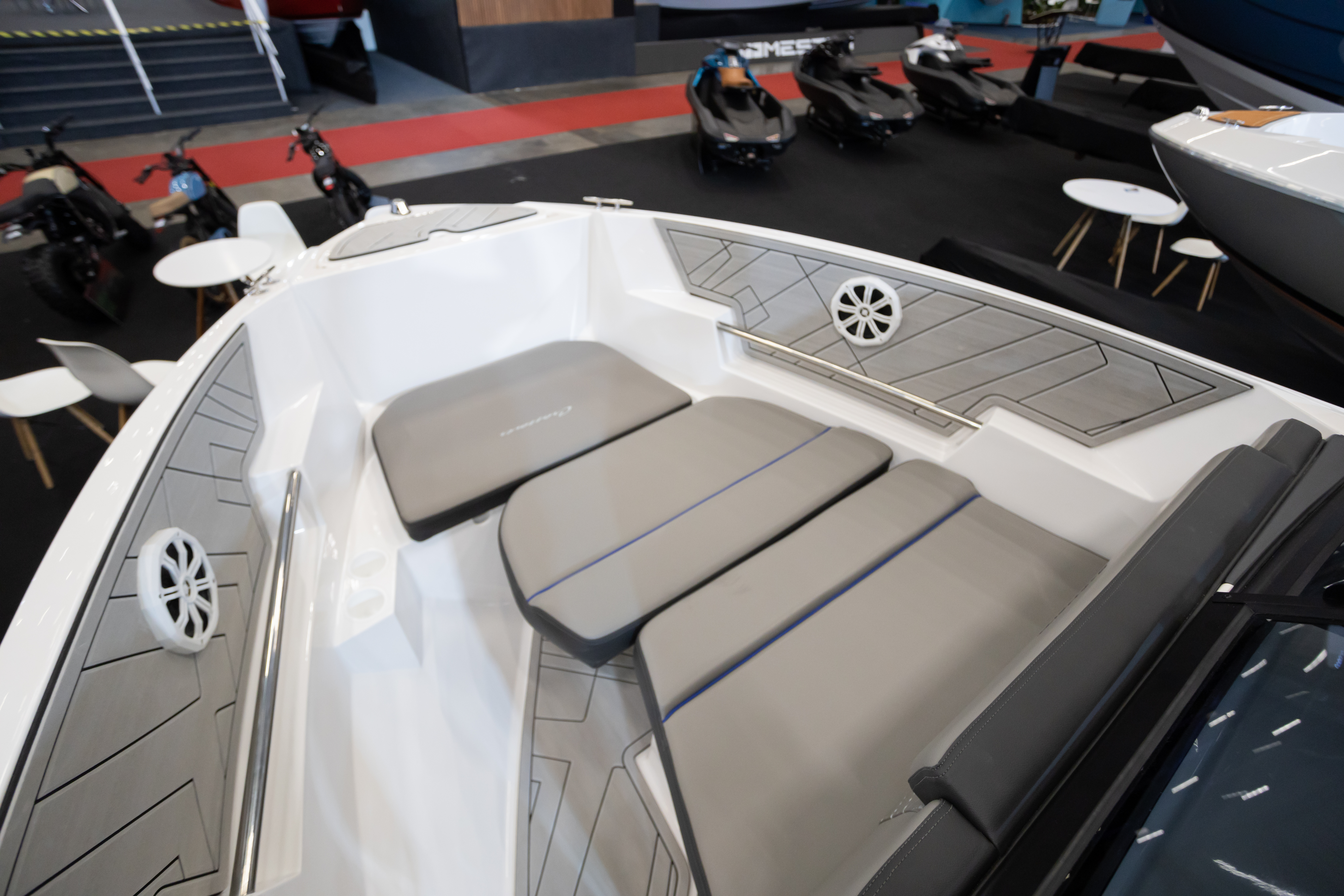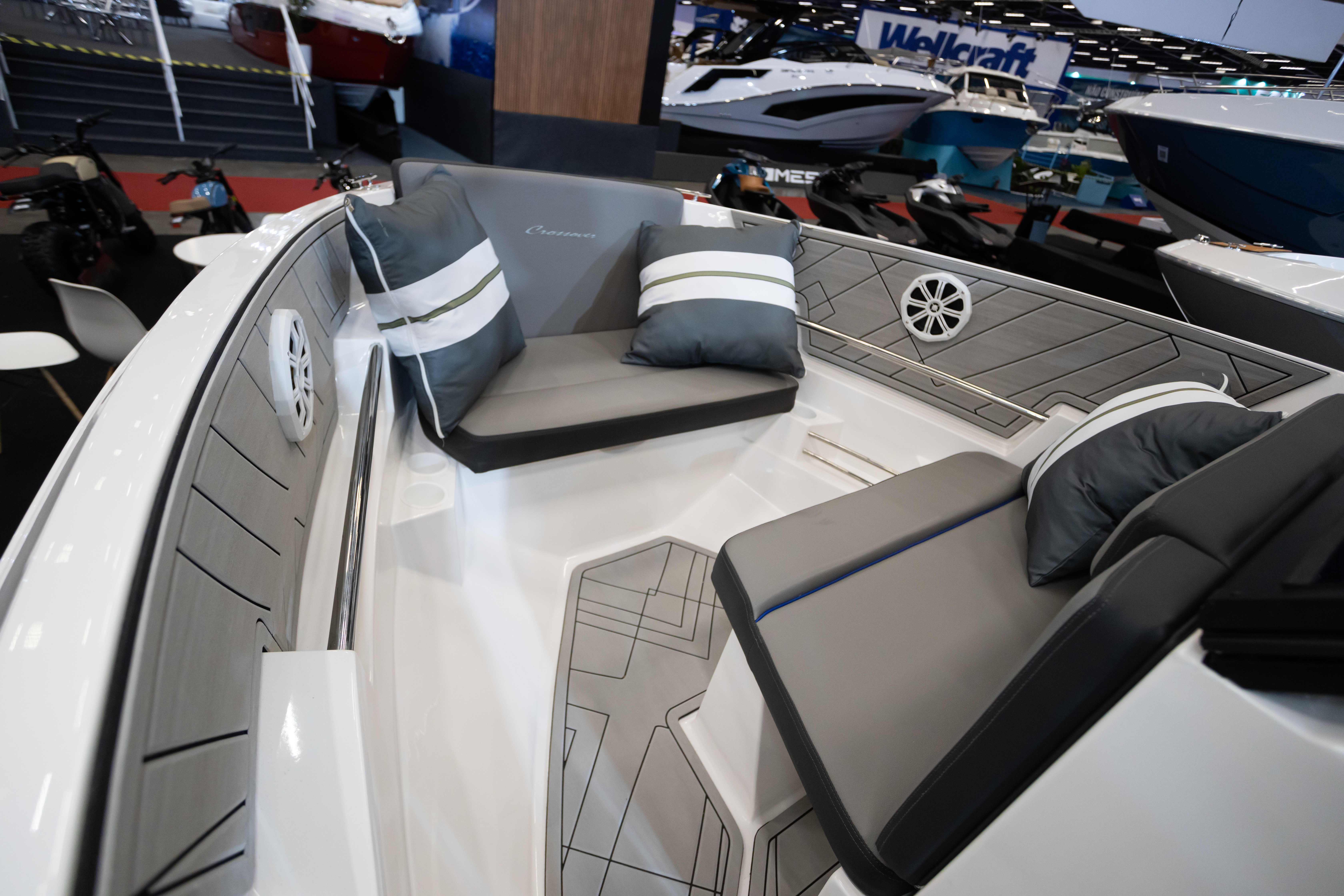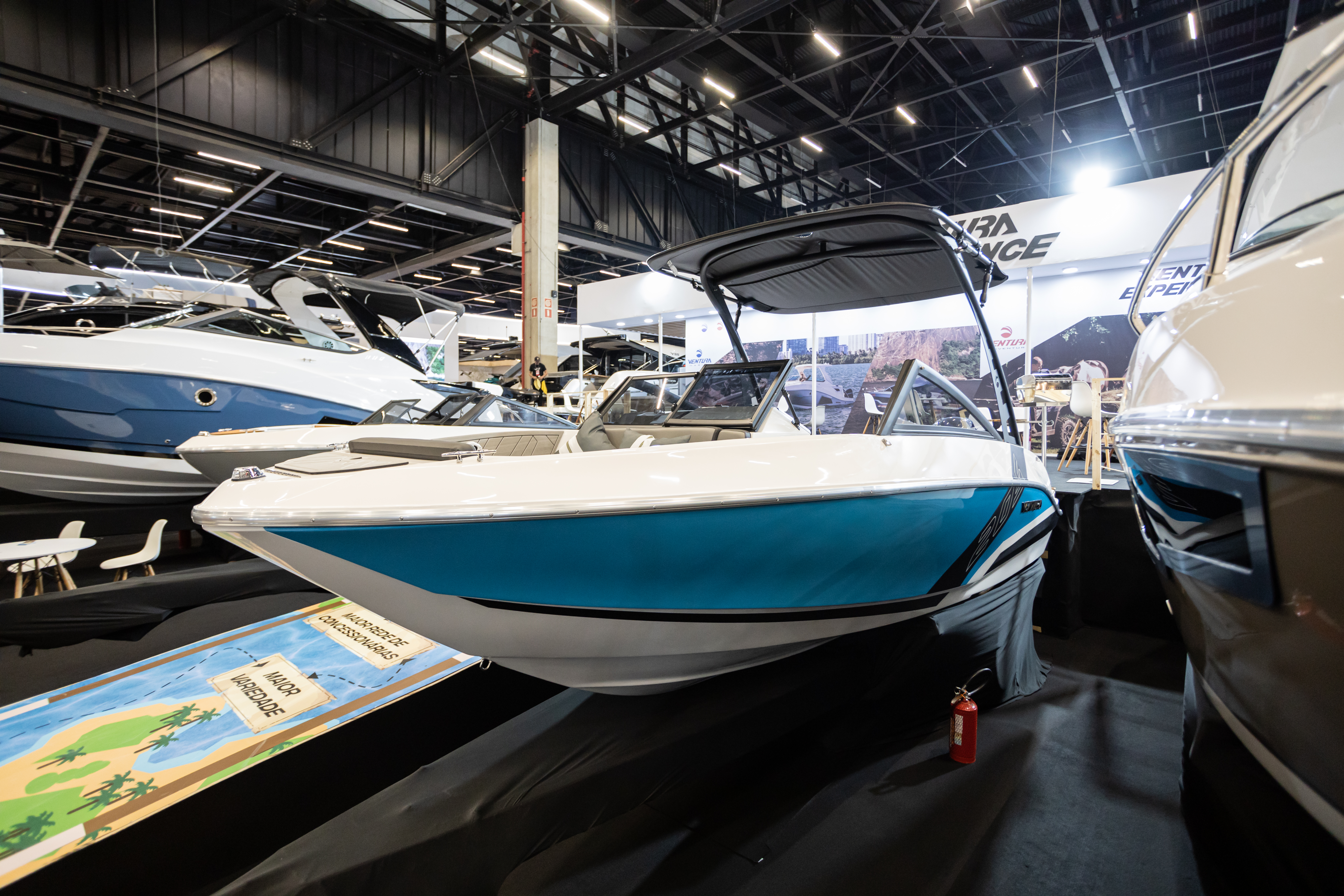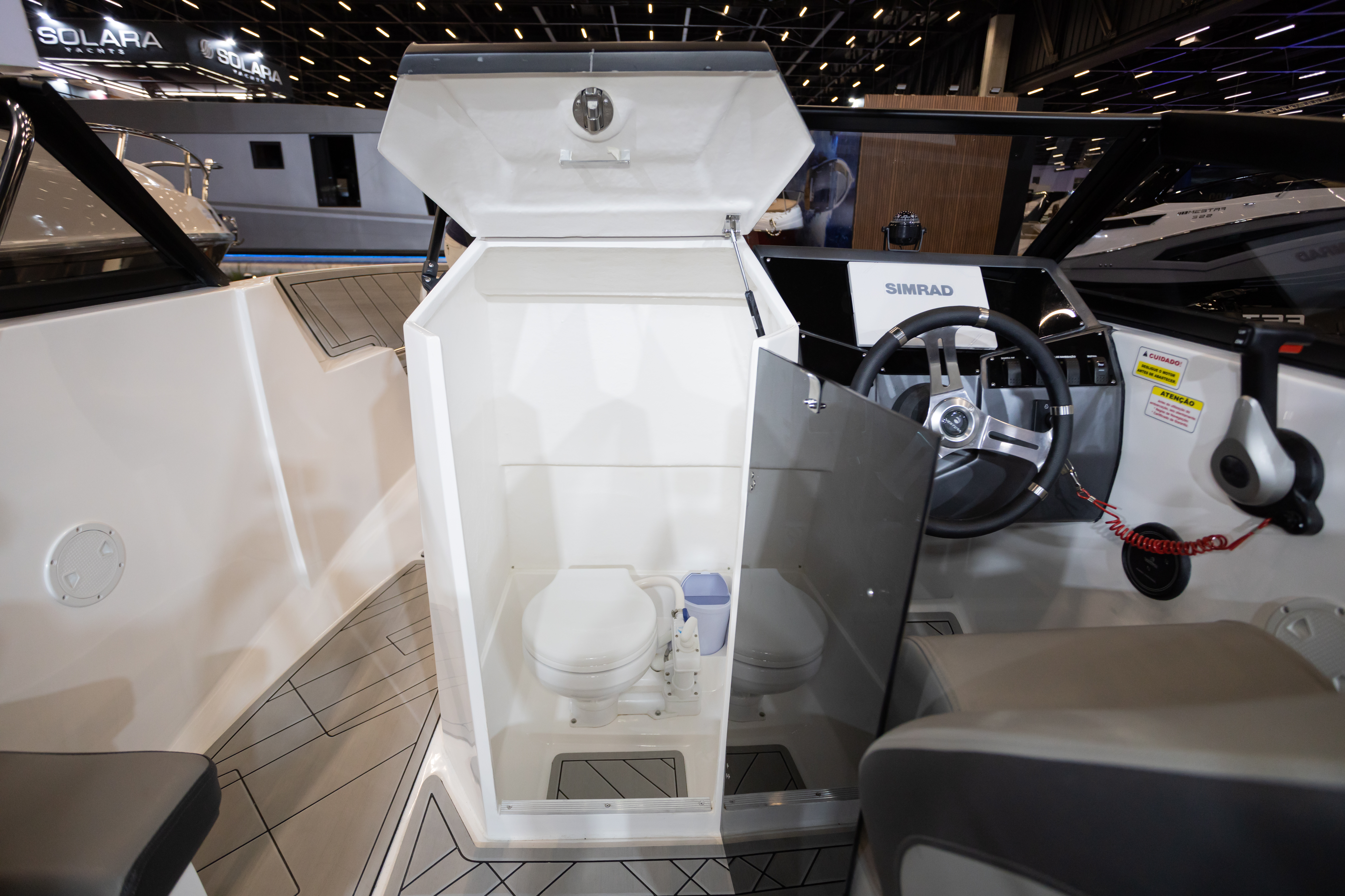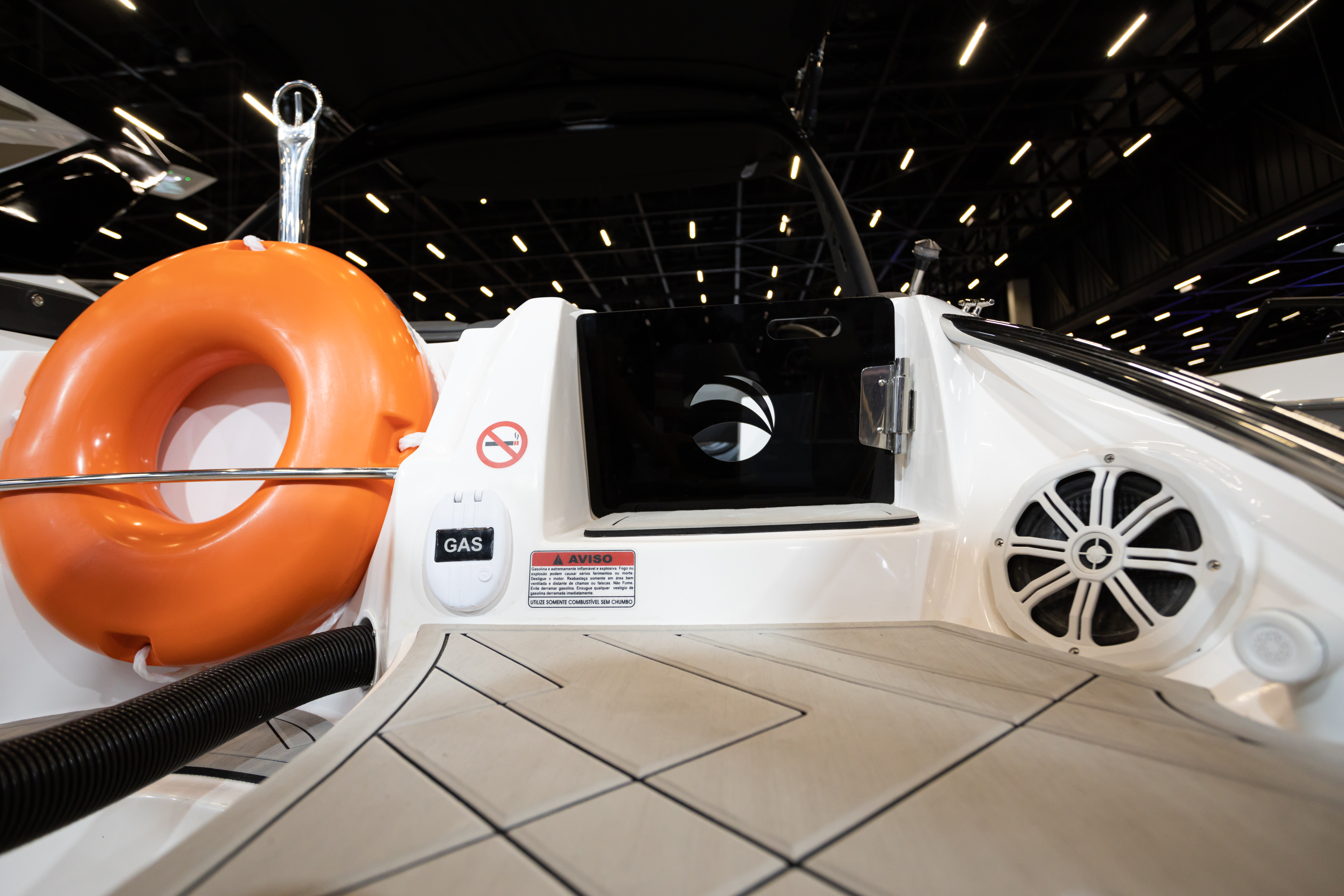 Única embarcação da categoria com banheiro, solário de proa, passarela de popa e predisposição para instalação de autofalantes na popa, além do costado alto que proporciona mais segurança e maior boca.