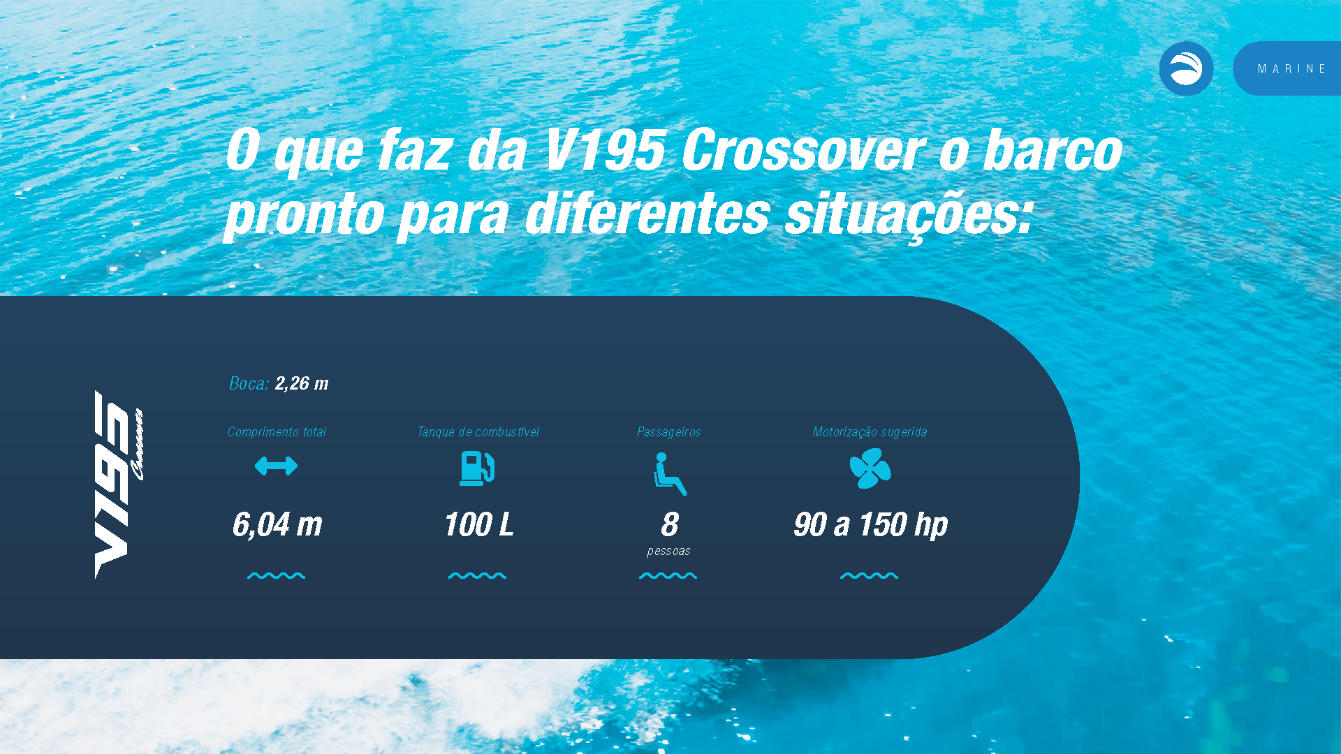Única embarcação da categoria com banheiro, solário de proa, passarela de popa e predisposição para instalação de autofalantes na popa, além do costado alto que proporciona mais segurança e maior boca.