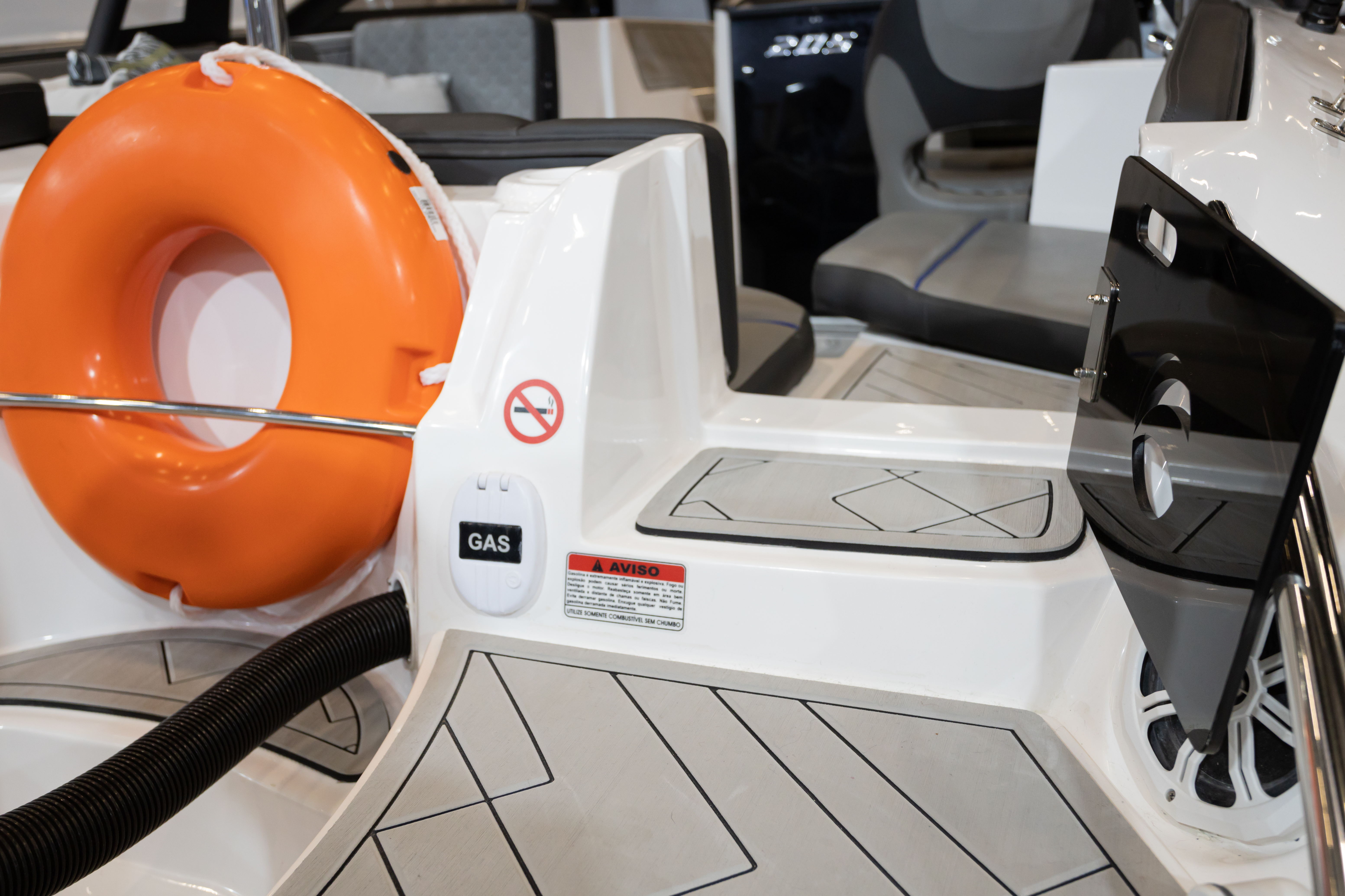 Única embarcação da categoria com banheiro, solário de proa, passarela de popa e predisposição para instalação de autofalantes na popa, além do costado alto que proporciona mais segurança e maior boca.