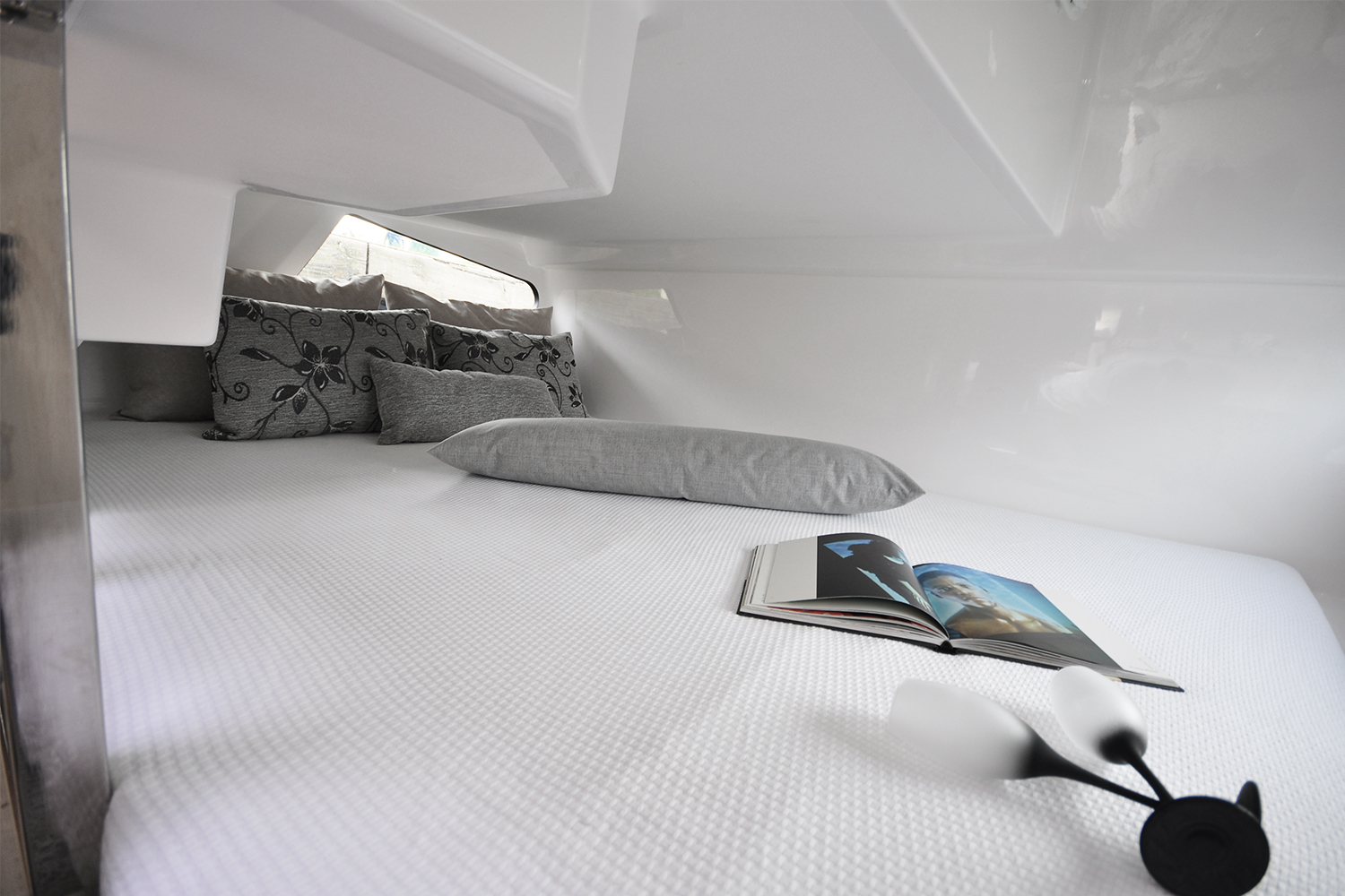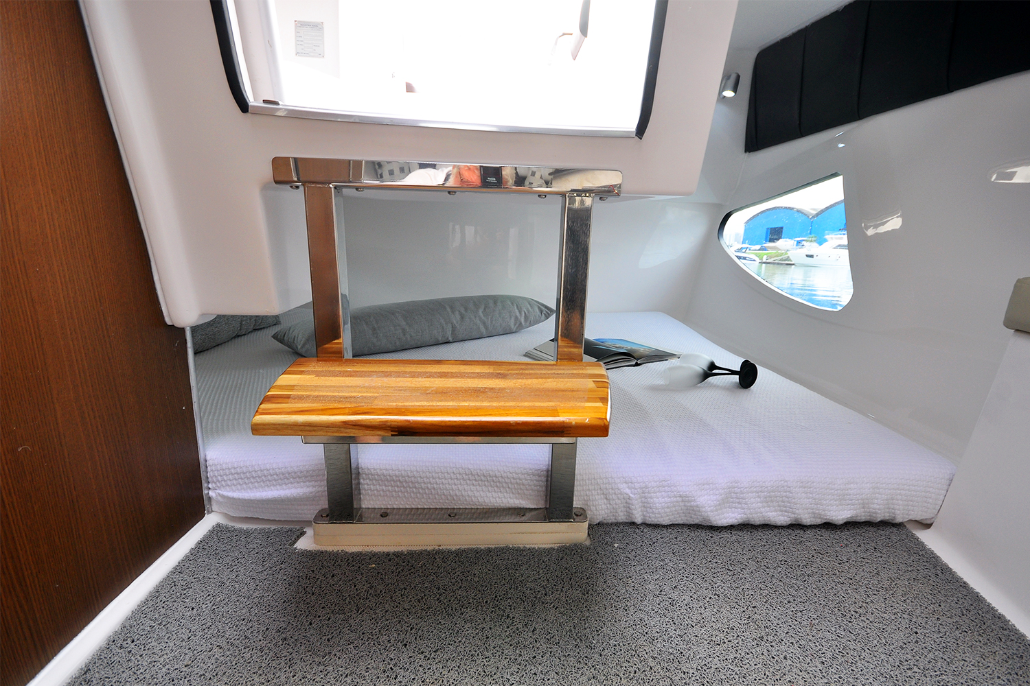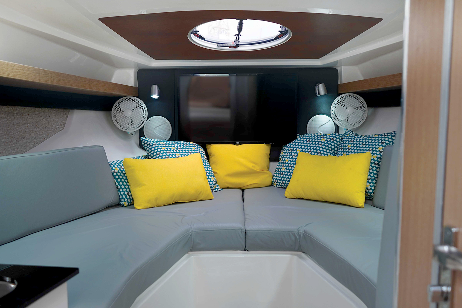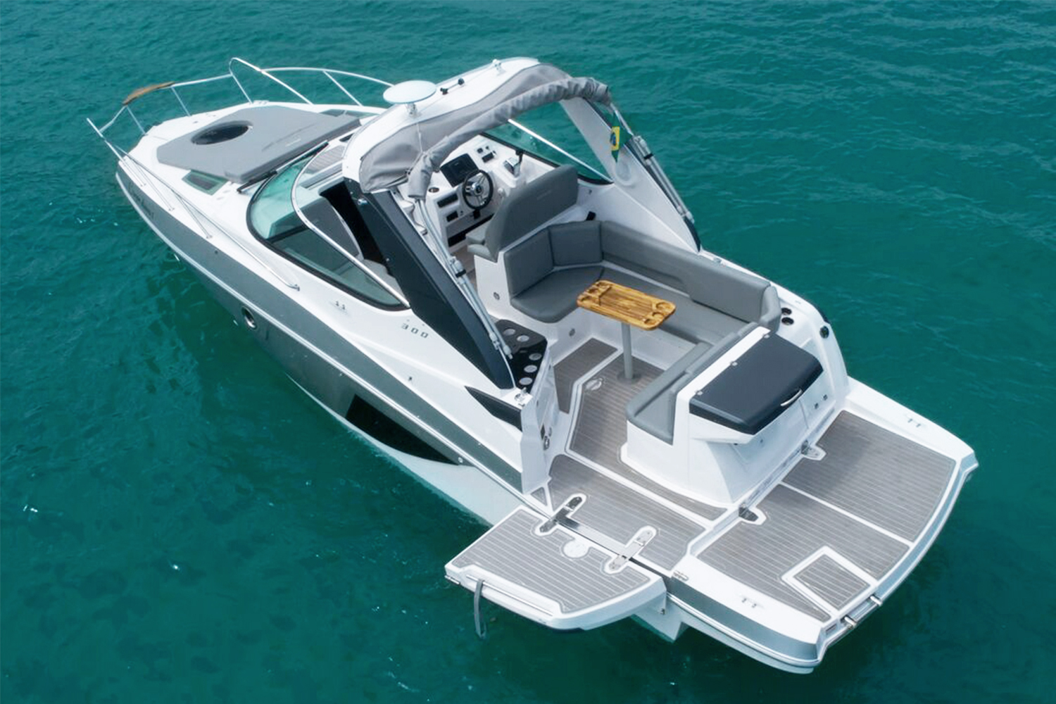 Única embarcação do mercado com cozinha interna que comporta instalação de geladeira, micro-ondas, fogão elétrico e adega de vinhos