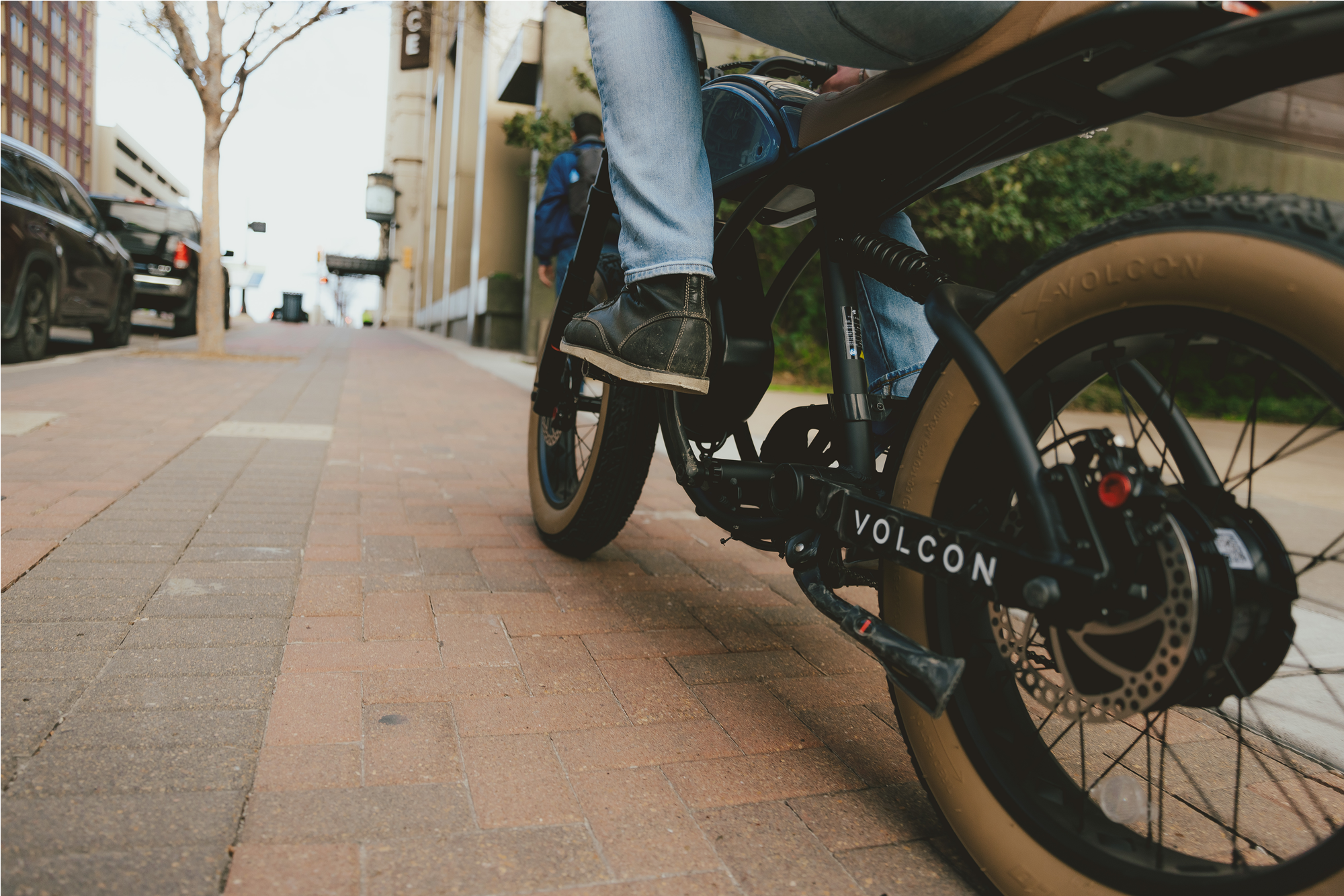 Os pneus do seu Brat foram projetados especialmente para esses veículos. O tamanho é 20 polegadas por 4,0 polegadas. São pneus de baixa resistência ao rolamento, adequados para uso em terrenos mistos e podem ser adquiridos em qualquer concessionária Volcon. A pressão dos pneus deve ser verificada com frequência e ajustada para 20 PSI.