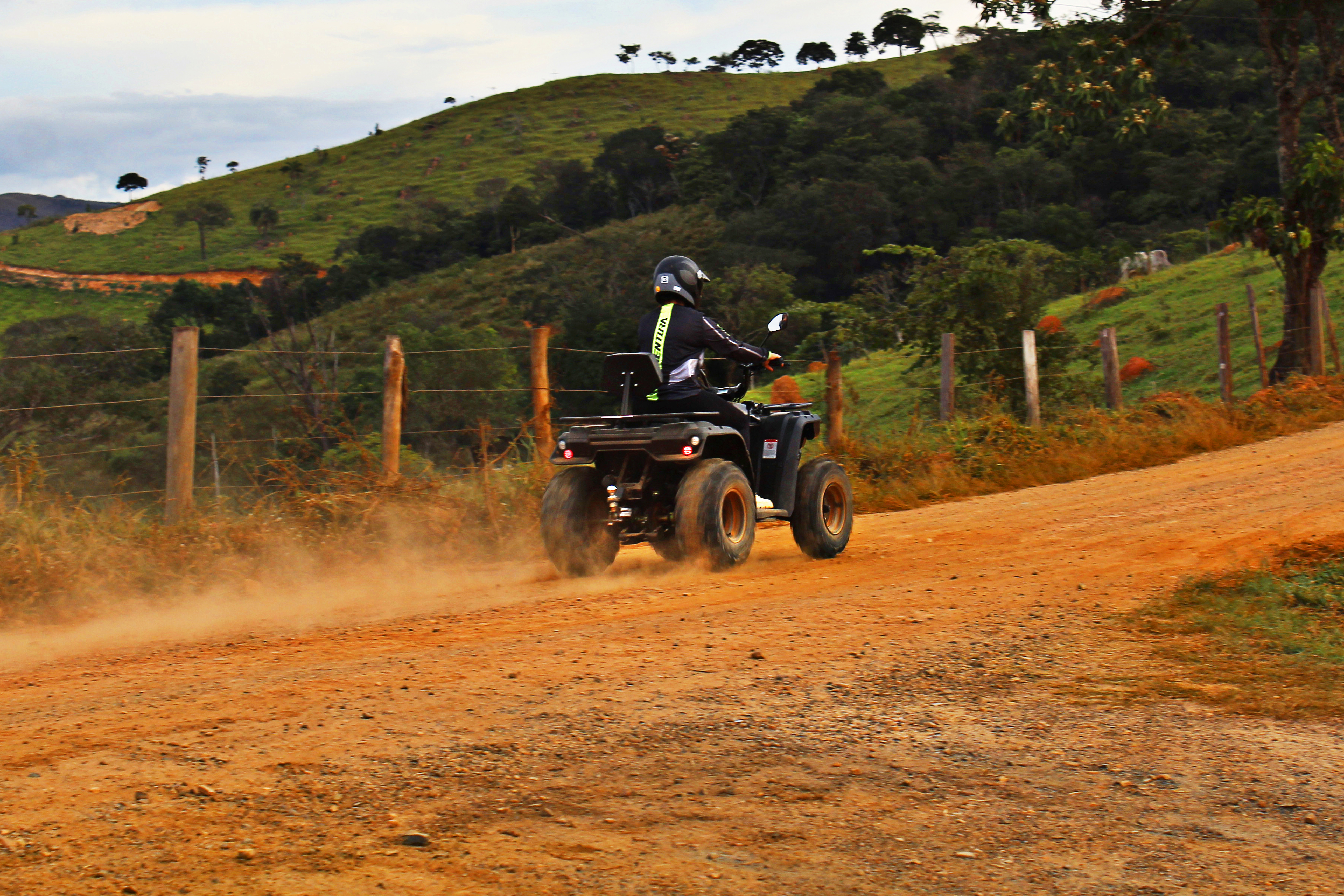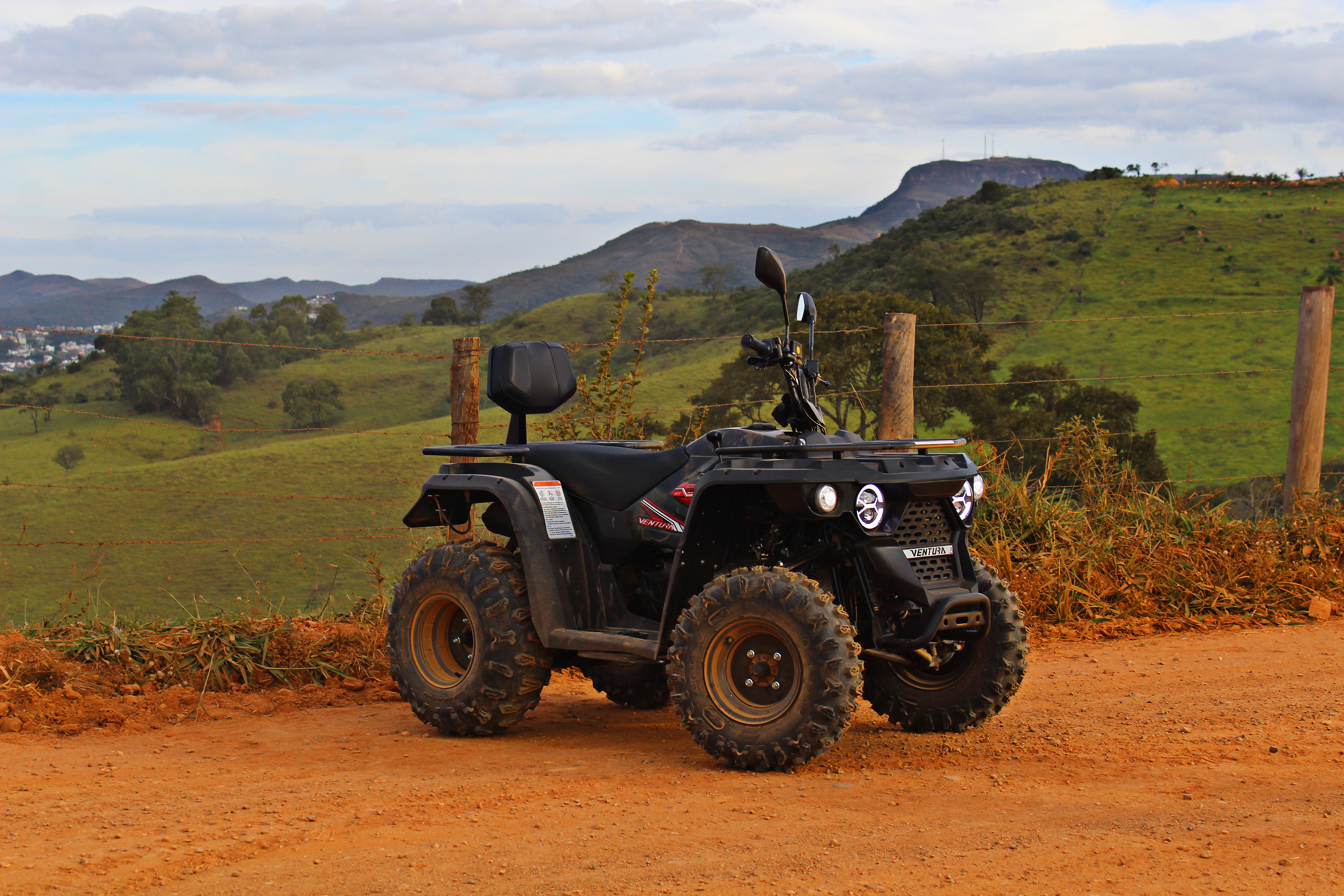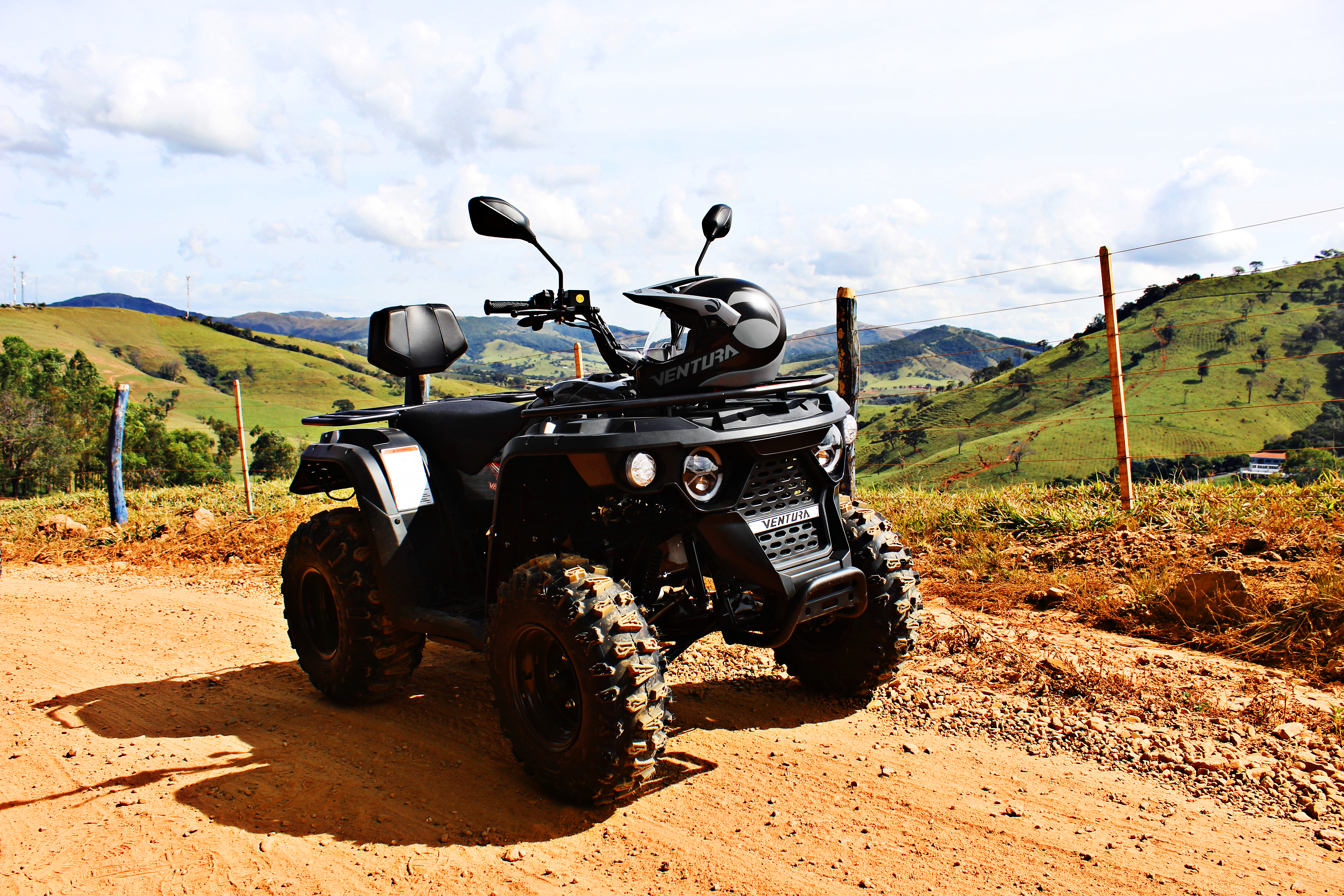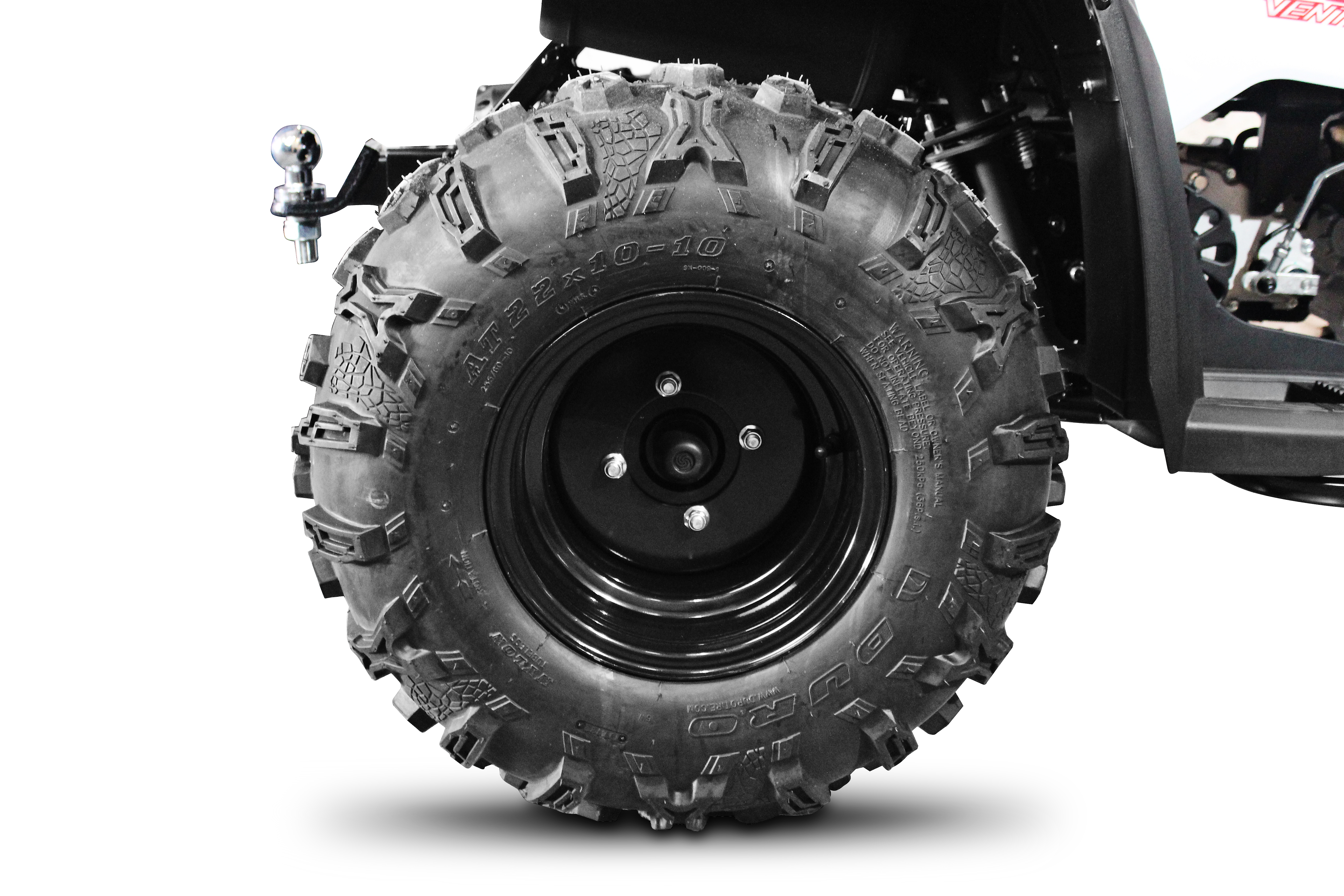 Rodas em aço ou alumínio – dianteira AT 21 x 7 e traseira AT 22 x 10.