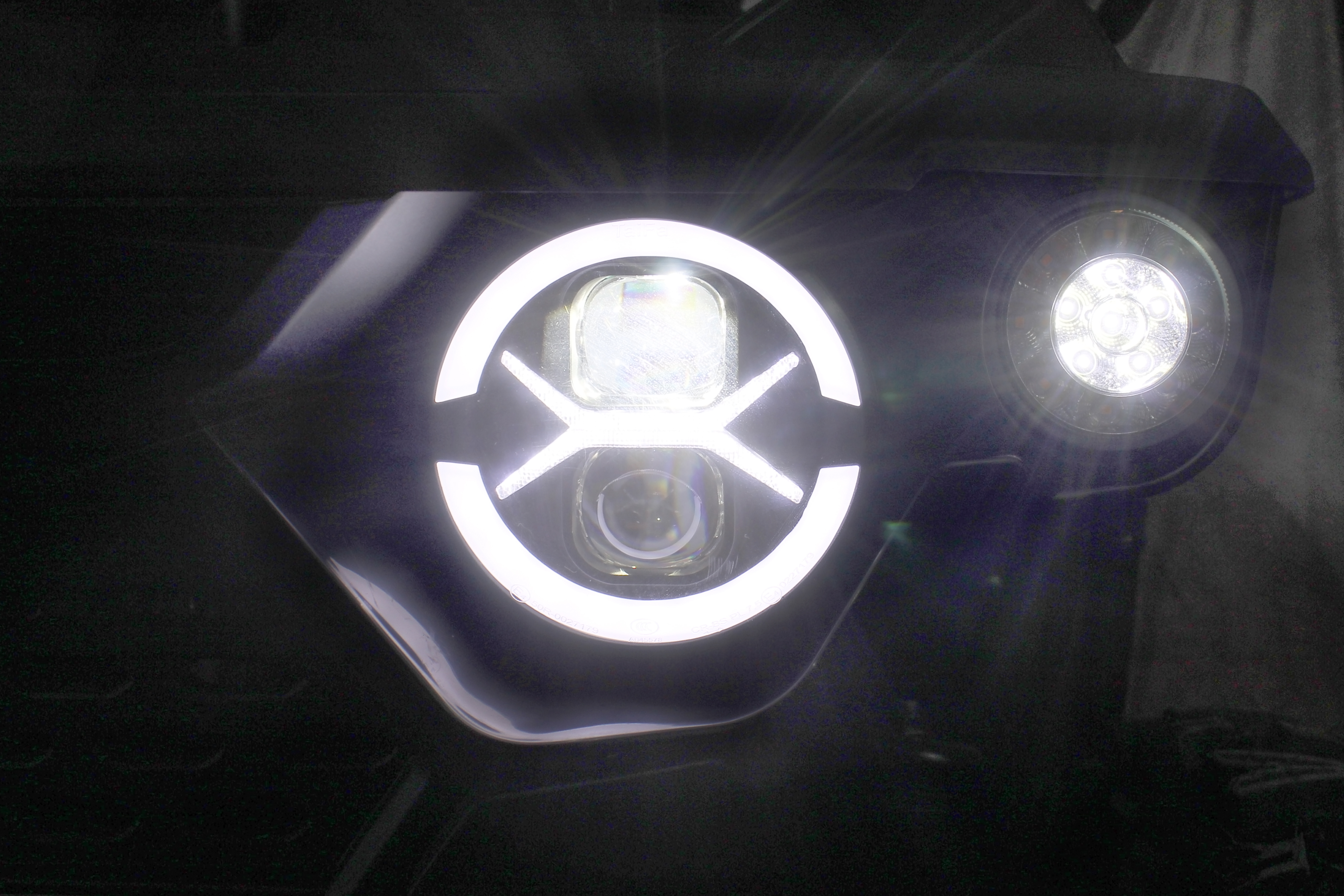 LEDs diurnas e faróis duplos de alto desempenho com lentes duplas completam o visual agressivo do ATV.
