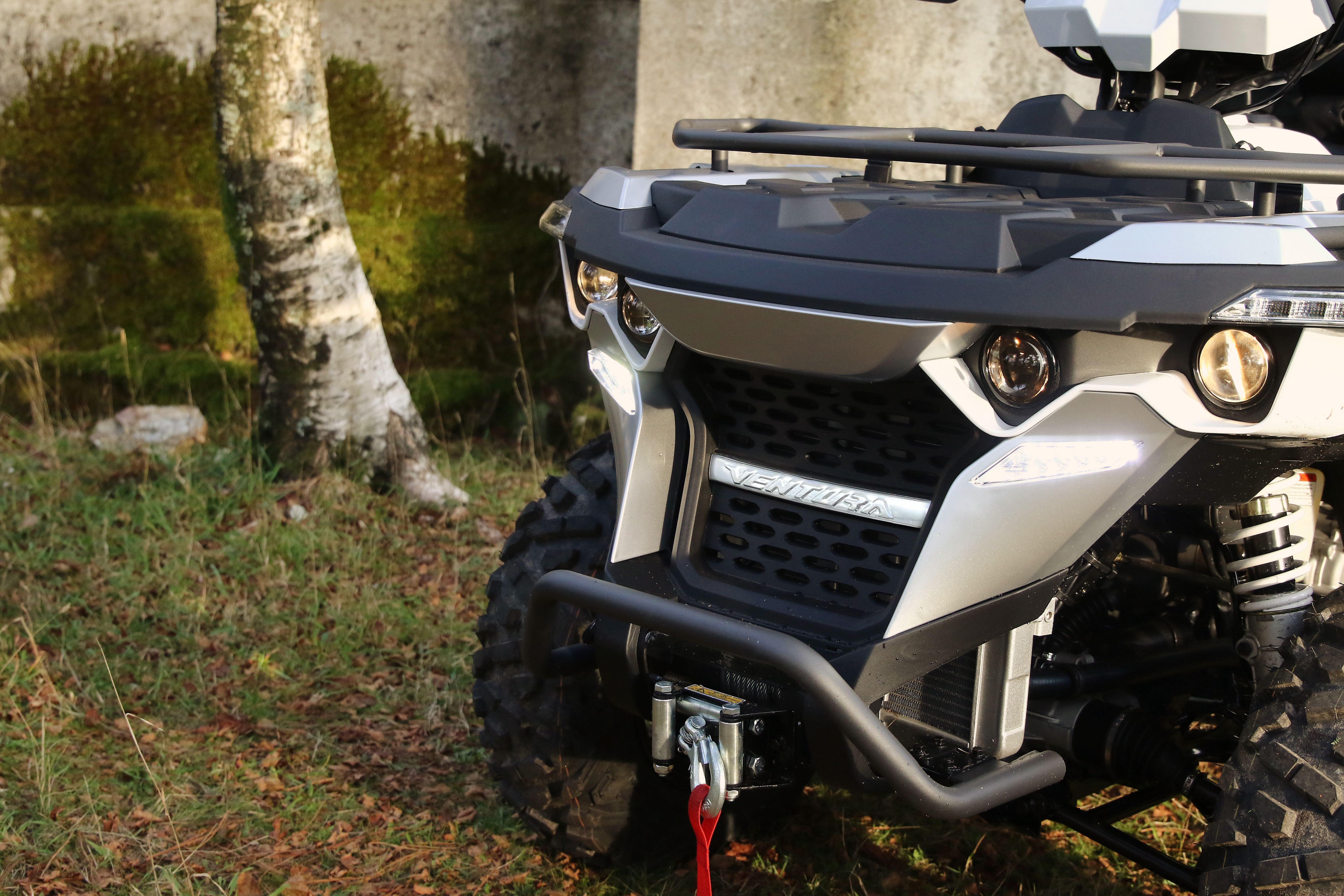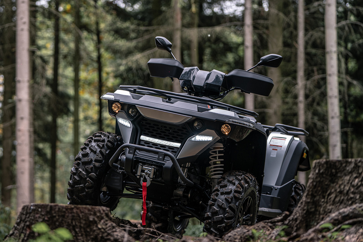 LEDs diurnas e faróis duplos de alto desempenho com lentes duplas completam o visual agressivo do ATV.