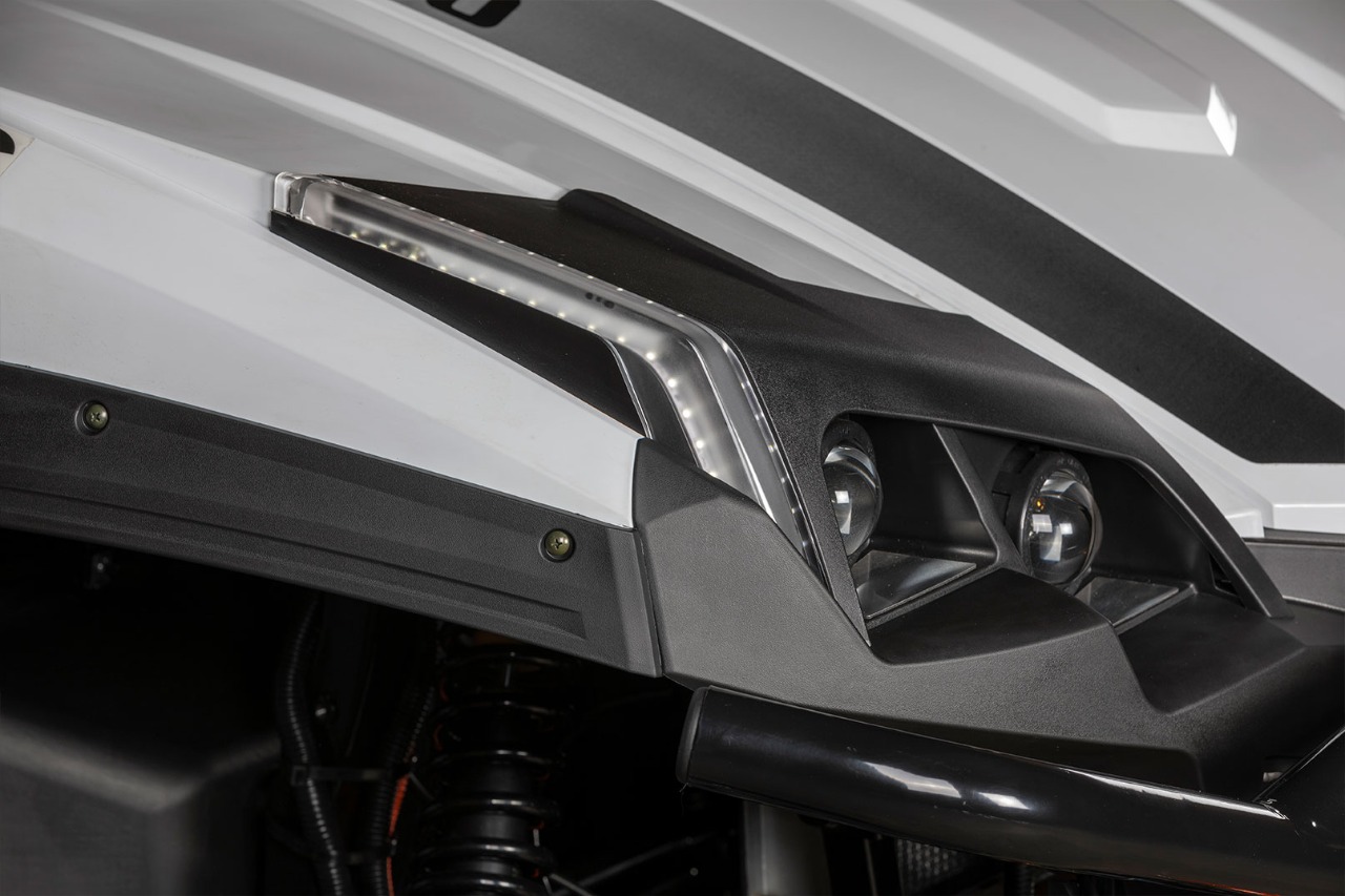 LEDs diurnas e faróis duplos de alto desempenho com lentes duplas completam o visual agressivo do ATV. A tecnologia LED também é usada nas luzes traseiras de 16 posições e pisca-pisca traseiro, mais um fator de segurança.